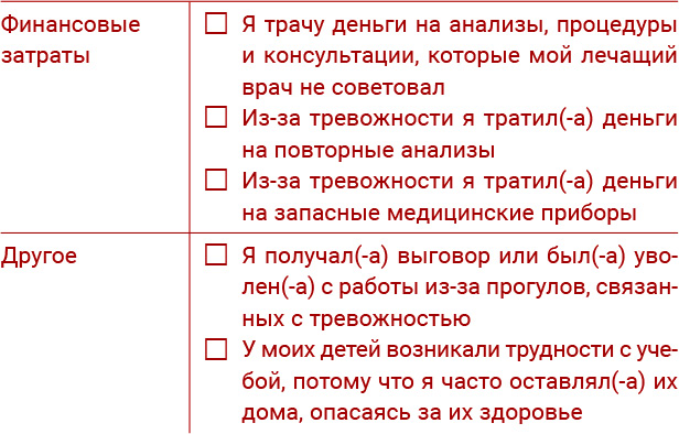 Ниже вы найдете опросник, который поможет определить конкретные отрицательные стороны вашего случая ипохондрии. Аккуратный и вдумчивый анализ может занять несколько дней.