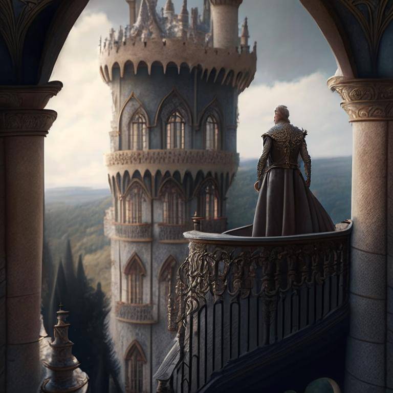 Наконец они дошли до территории замка, внутри люди к чему-то готовились, все были заняты чем-то и совсем не замечали гостей. Георгий, приближаясь к замку, увидел девочку в окне замка, она была очень красива, длинные вьющие белые волосы и огромные голубые глаза. Она, тоже увидела Георгия, и скромно, спряталась за раму окошка, но продолжала смотреть и наблюдать за происходящими событиями. Оказавшись в плотную к замку, они увидели короля на балконе, он большим шагом ходил из стороны строну, и видно было что он чем-то встревожен.