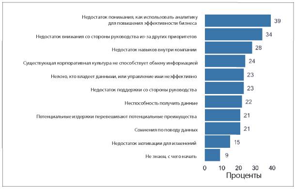 Рис. 1.5. Ответы на вопрос «Что становится основным препятствием для активного использования информации и аналитических данных в вашей компании?»