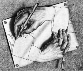 И тут возникает проблема языка, который ограничивает возможности понимания. Неужели язык надо менять? И автор преподносит очередной урок. В 1866 году Парижское общество лингвистики запретило все исследования в области эволюции языка как пустое времяпровождение и пустословие! Не прошло и века после того, как в 1775 году Парижская академия наук отказалась принимать на рассмотрение любые проекты вечных двигателей, как был сформулирован фундаментальный закон, который запрещает нам даже надеяться, что мы и в будущем получим больше возможностей объясниться с новыми поколениями изобретателей вечных двигателей. В этом смысле библейская легенда права – проклятие Вавилонской башни действует и в наши дни. Расшифровка «мертвых языков» так же, как формул, требует определенной интерпретации, например, в виде Розеттского камня. Поиск интерпретаций напоминает разгадку головоломки – не потому ли автор не устает загадывать нам загадки или «подбрасывает» их образ в картинах Эшера? Игра облегчает взаимопонимание – так понимают друг друга дети.