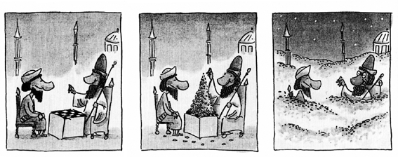 Сколько весят 18,5 квинтиллиона зерен пшеницы? Если принять размер каждого зернышка равным миллиметру, то их общий вес составит около 75 млрд тонн – намного больше запасов любого шаха. Собственно говоря, это урожай за 150 лет при современных объемах производства. Дальнейшее тонет во мраке времен. Уступил ли шах мудрецу свою державу, коря себя за пренебрежение арифметикой, или предпочел сыграть в новую игру «визирьмат», осталось неведомым.