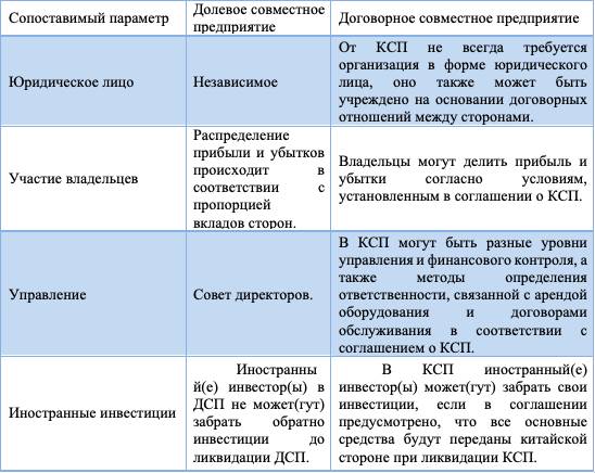 В Китае существует два типа совместных предприятий: китайско-иностранное долевое совместное предприятие (ДСП) и китайско-иностранное кооперативное совместное предприятие (КСП).