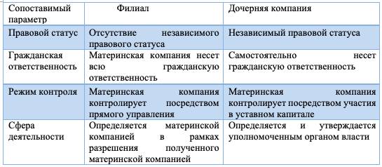 Сравнение между филиалом и дочерней компанией