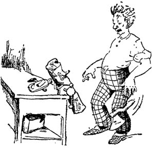 – Я еще мастерить тебя не кончил, а ты уже за проказы принялся, Это очень плохо с твоей стороны!