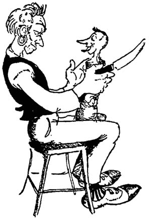 Карло хотел было надрать уши шалунишке, но представьте себе, – ушей у Пиноккио и не оказалось: второпях Карло забыл сделать уши. Тогда, схватив озорника за шиворот, Карло потащил его домой.