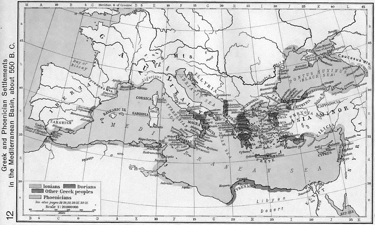 Ил. 5. Экспансия Греции и Финикии в середине шестого века.