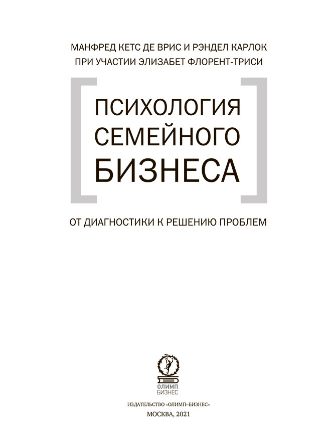 В своей замечательной книге «Психология семейного бизнеса: от диагностики к решению проблем» мой давний партнер и друг Манфред Кетс де Врис освещает прежде никем не затронутые психологические аспекты семейного бизнеса. Я рад, что благодаря издательству «Олимп-Бизнес» эта абсолютно практическая работа теперь доступна на русском языке. Убежден, что она принесет огромную пользу владельцам бизнеса и состояния, а также их семьям и поможет им благополучно пройти все сложные развилки.
