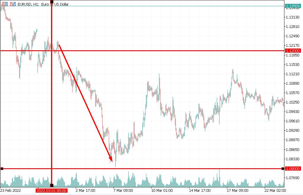 Рисунок 4 EUR/USD упал с 1.12 до 1.08