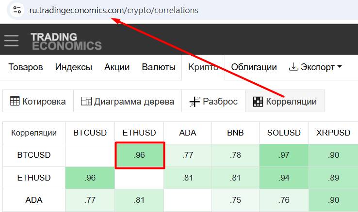 Примеры корреляций на форекс, фондовом и крипто рынках