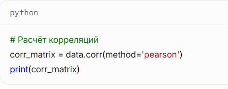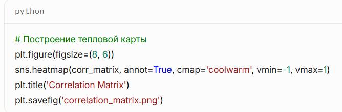 – Визуализация: Seaborn и matplotlib помогают строить тепловые карты и графики, упрощающие интерпретацию корреляций.