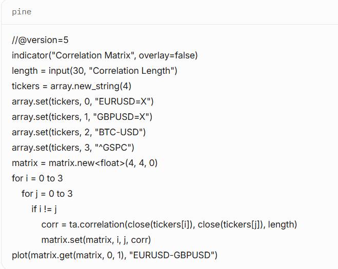 2. Найдите в библиотеке Pine Script индикатор Correlation Matrix или создайте собственный скрипт:
