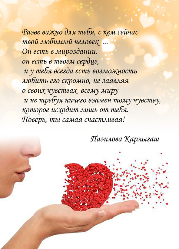 Быть может день сегодня нежныйИ небо смотрит на тебя,Улыбка вся твоя сегодняЛучистым светом озарена.Сегодня день особый важныйОтмечен красным днем календаряИ звезды в небе закружилисьЧтобы обнять твою звезду любя.Листва склонилась нежной тенью,Друзья твои вокруг тебяЖелают блага и весельяИ счастье в личной жизни для тебя.Вскользь о тебе
