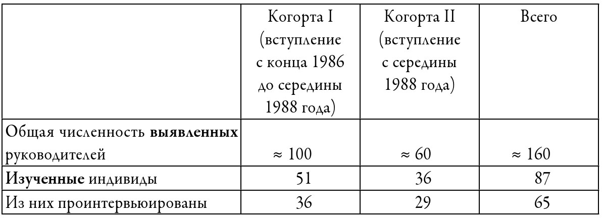 При составлении выборки мы не принимали во внимание последующие траектории индивидов в 1990—2000-х годах, что позволило нам избежать ретроспективного определения мира неформалов. Тем не менее в конце книги мы приводим некоторые данные об их политическом и профессиональном становлении после Перестройки.