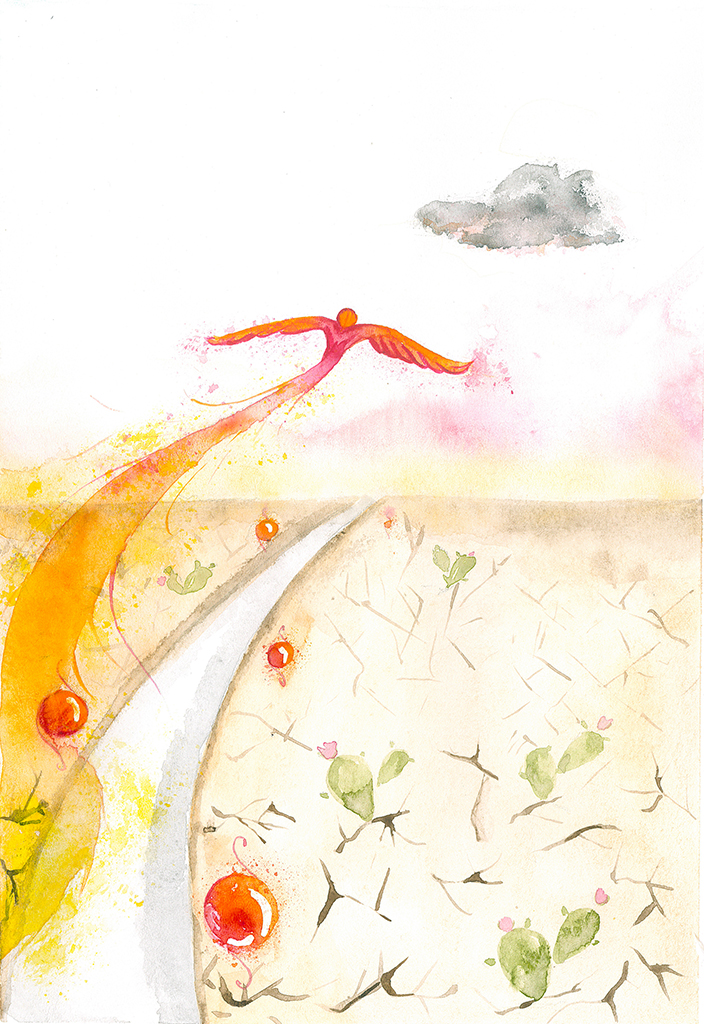 С той и с другой стороны от дороги были потрескавшаяся земля и много-много кактусов. Тех самых, которые состоят из небольших колючих лепешек. Во сне было предзакатное время. Красивое, романтичное, таинственное. И солнечный красно-розовый свет отражался в блестящих шарах, похожих на сгустки энергии, они висели в пяти метрах над дорогой. Вероятно, здесь это было аналогом нашего придорожного освещения.