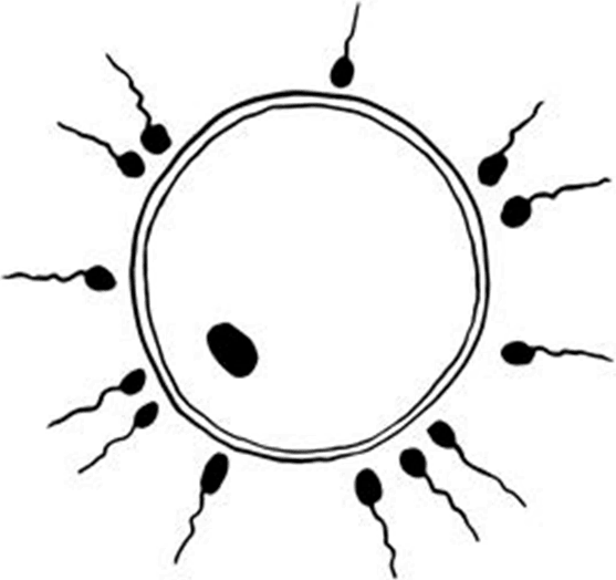До финишной прямой добираются лишь единицы, и выделяемые женской половой клеткой особые вещества вынуждают сперматозоидов плыть как никогда быстро. Вскоре яйцеклетка оказывается полностью окружена головастиками с лихорадочно извивающимися хвостиками. Сперматозоиды начинают проникать в защищающую яйцеклетку желеобразную оболочку. При этом они используют личное химическое оружие – выпрыскивают из головок ферменты, расщепляющие вещество оболочки, благодаря чему зарываются все глубже и глубже.