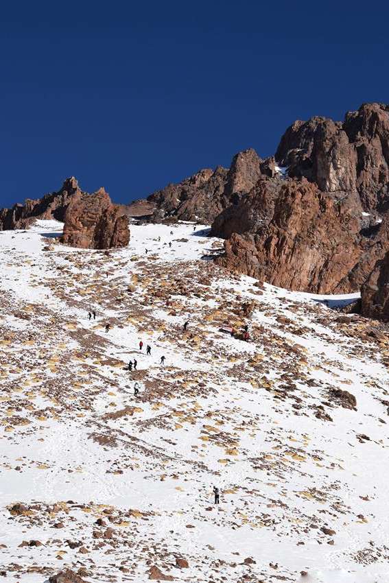Минуя первые 100 метров на подъеме вижу «финиш». «Как такое возможно!?» думаю я. Ведь финиш же должен быть куда выше. Мой обветренный едким морозом мозг даже не смог осознать, что это был конец дистанции вертикального километра. Благо я заметила людей, идущих выше и выше и все поняла. Стало стыдно за свою тупость, но я продолжила карабкаться. Еще спустя пятьдесят метров поняла, что палки мне лишь мешают и кидаю их в сторону от тропы. Подберу на обратном пути… Далее карабкаюсь руками.