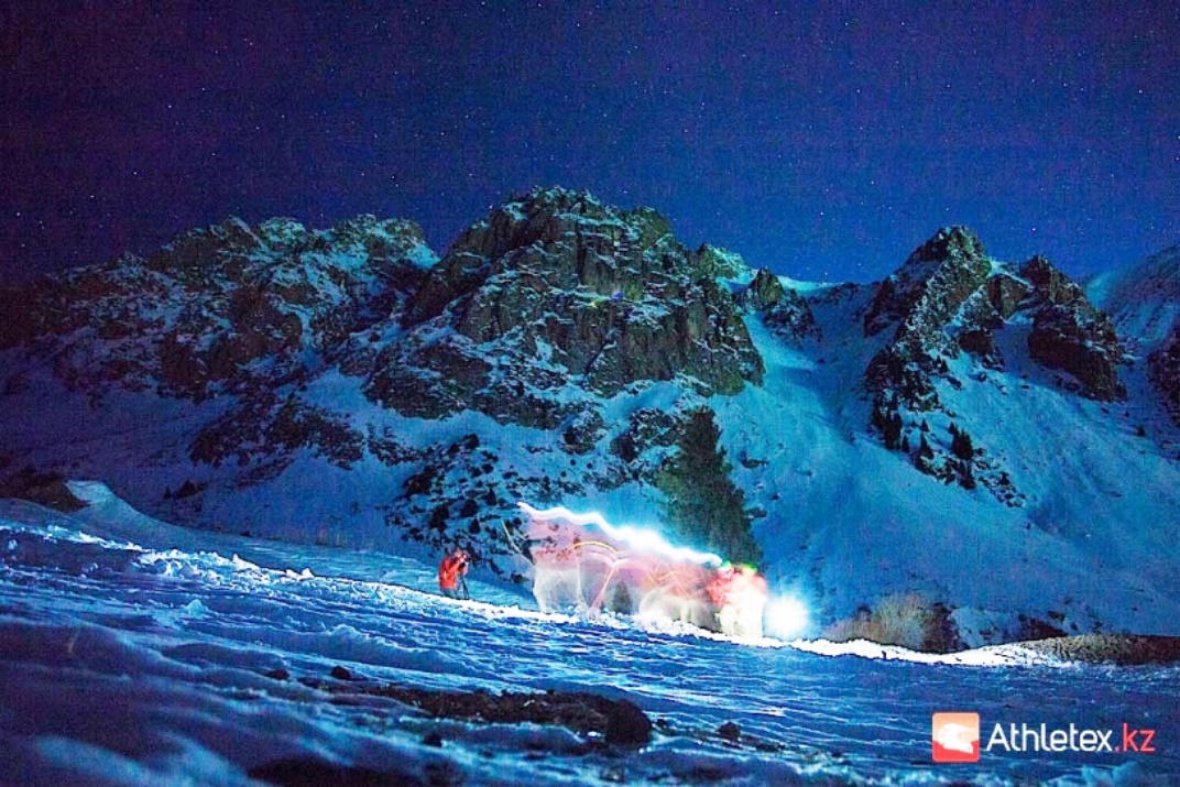 К брифингу мы с Алишером запаздывали. Да и плевать хотели на брифинг, мы едва ли успели к старту! Подъехали с Артемом Якуповым (который по доброте душевной подвез нас до места) к старту (конец асфальта, выше Чимбулака) уже в потемках, в 18:45, когда все поголовно были с фонарями во лбу. Усилием воли заставив себя снять куртку и остаться только в свитере и терморубахе, я покинула машину и тоже судорожно начала готовиться к старту. В суете даже не увидела многих наших, да в общем-то и двинулась я с места тоже в суете, но не без адреналина и восторга, который обычно так и прет. Исключением не стал и этот раз.