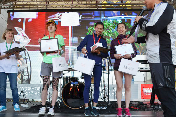 Подходим к сцене. На ней стоит Валихан с двумя девушками призерками. Одну из них я знаю. Это Гульжанат. Она и раньше множество раз побеждала. Два года назад, в мое первое участие на дистанции 10 км, я брала у нее интервью, как у победительницы. Я так ею восхищалась. Для меня это было вне досягаемости…