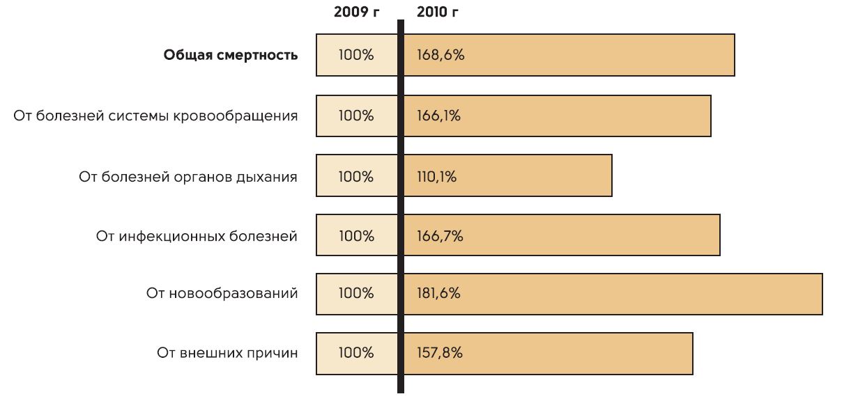 Рост смертности в г. Москве в результате аномальной жары 2010 г.