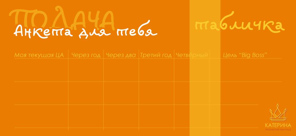 И кто моя ЦА на данный момент. (пол, возраст, уровень достатка, сфера деятельности – достаточно ли нам данной ЦА или мы хотим привлечь новую? более успешную и платежеспособную? давайте их опишем!)