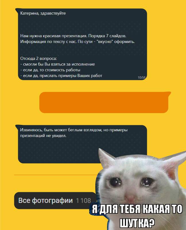 Варианты ответа, если просят скинуть макеты позиций, которых у вас нет или мало: