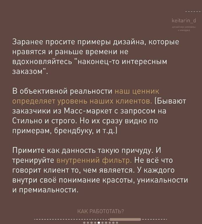 Вы и представить себе не можете, как часто я попадалась на это! Думала, что правки сразу идут от того, кто утверждает дизайн и вносила их, делала несколько вариантов, а потом получала в ответ: «Ну всё, теперь можно директору отправлять». Я в такие моменты подвисала: «То есть я подстраивала дизайн под ваши вкусы, а вы даже ничего не решаете?».
