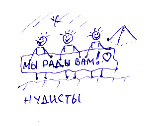 Нудисты заняли всю ровную поверхность, а у подножья горы организовали уборную. Незанятыми оказались лишь огромные наваленные друг на друга камни. Сидеть на них можно было с горем пополам. Но не в уборной же селиться.
