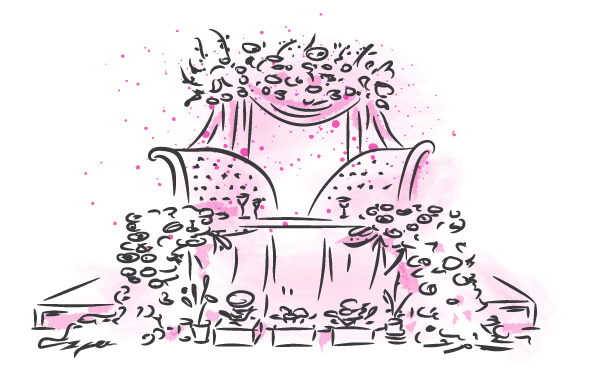 Обратите внимание на место, где будут сидеть главные действующие лица – именинник, юбиляр или молодожены. Возможно, это готовый подиум, или же место напротив сцены, а может, вы и сами сможете выбрать подходящее место для главного стола в зале.