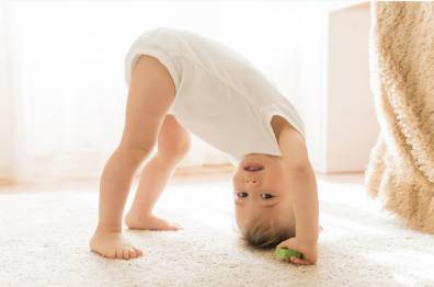 После прямохождения ребёнок начинает залезать, подпрыгивать и балансировать – усложнять те движения, которые он уже освоил. Также маленький ребёнок начинает укреплять мышцы, стремясь переносить достаточно тяжёлые вещи. Опять же, если мы не форсируем ребёнка, у него есть встроенная система безопасности – он не будет поднимать то, с чем он не в состоянии справиться, то, что может ему повредить. Он будет поднимать что-то достаточно грузное и как-то это тащить, и класть, и отдыхать, и пробовать снова – это для него как тренажёрный зал. Потенциально тренажёр может дать слишком большую нагрузку, но, если Вы садитесь и понимаете, что не можете это поднять, так Вы и не поднимаете, и снимаете лишние «блинчики» со штанги. То же самое делает ребёнок – не надо его сильно от этого уберегать: он сам себя вряд ли повредит. При чём это длится недолго.