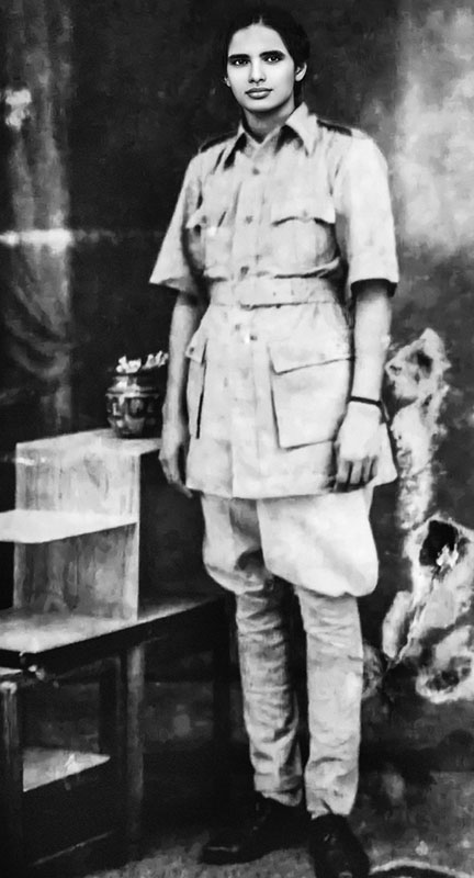 Мать, Шримати Гьяни Дэви, в возрасте 24 лет, в экипировке для верховой езды