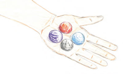 Фея поднесла Насте на ладошках четыре стеклянных шарика. У них внутри были разные узоры. У первого шарика внутри была стена огня, у второго – плескалось море, у третьего – крутились ураганы, а у четвёртого – возвышались скалы.