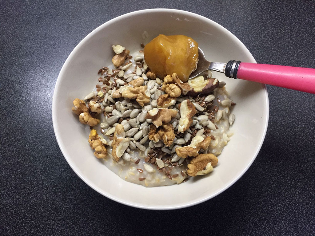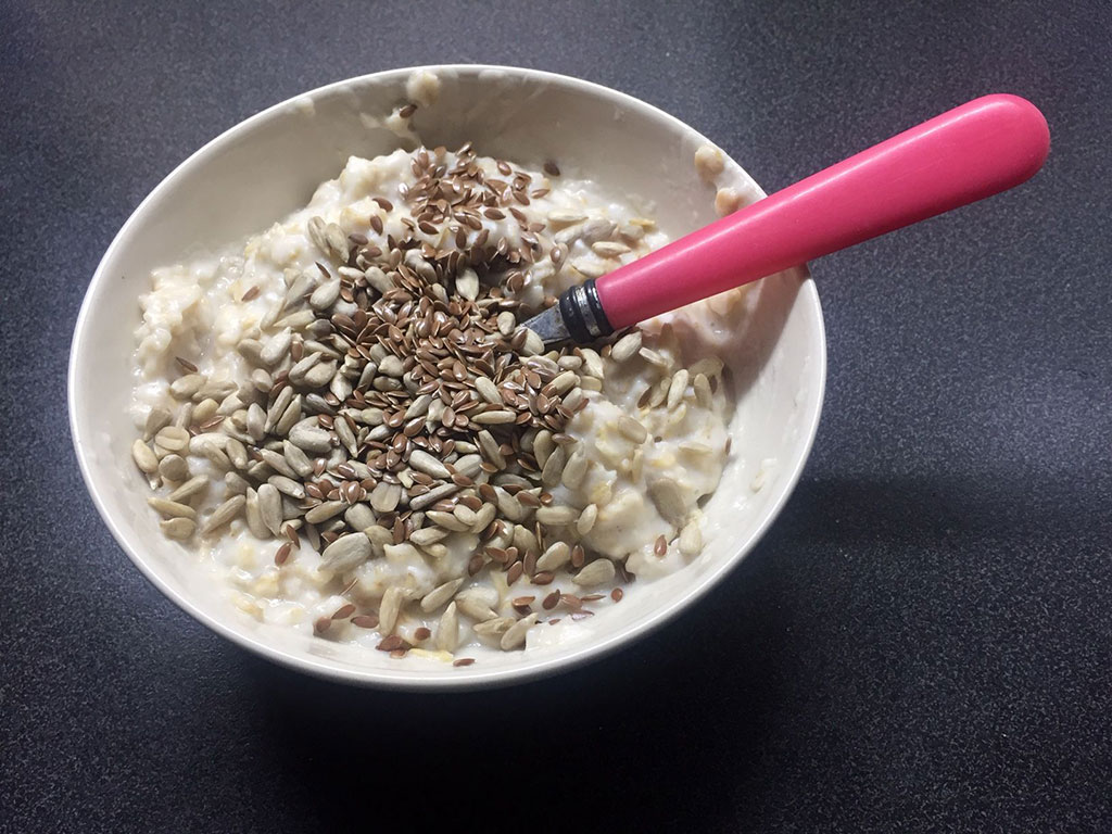 Овсяная каша с подсолнечными семечками и семенем льна.