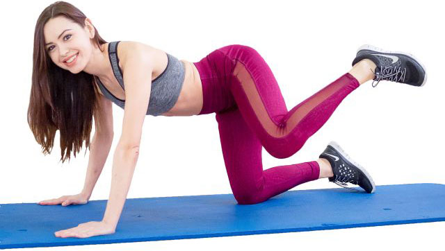 Отведение бедра в сторону из положения стоя на четвереньках на коврике (20–25 раз на каждую ногу)