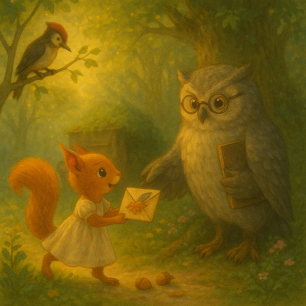 В один тёплый утренний час белочка по имени Мира бегала по лесу, собирая жёлуди. Солнце лениво просыпалось, пробегая золотыми пятнышками по траве. Ветра не было, и в этом тишайшем лесном утре каждый звук был слышен особенно ясно: стрекот кузнечика, капля росы, упавшая с листа, и…