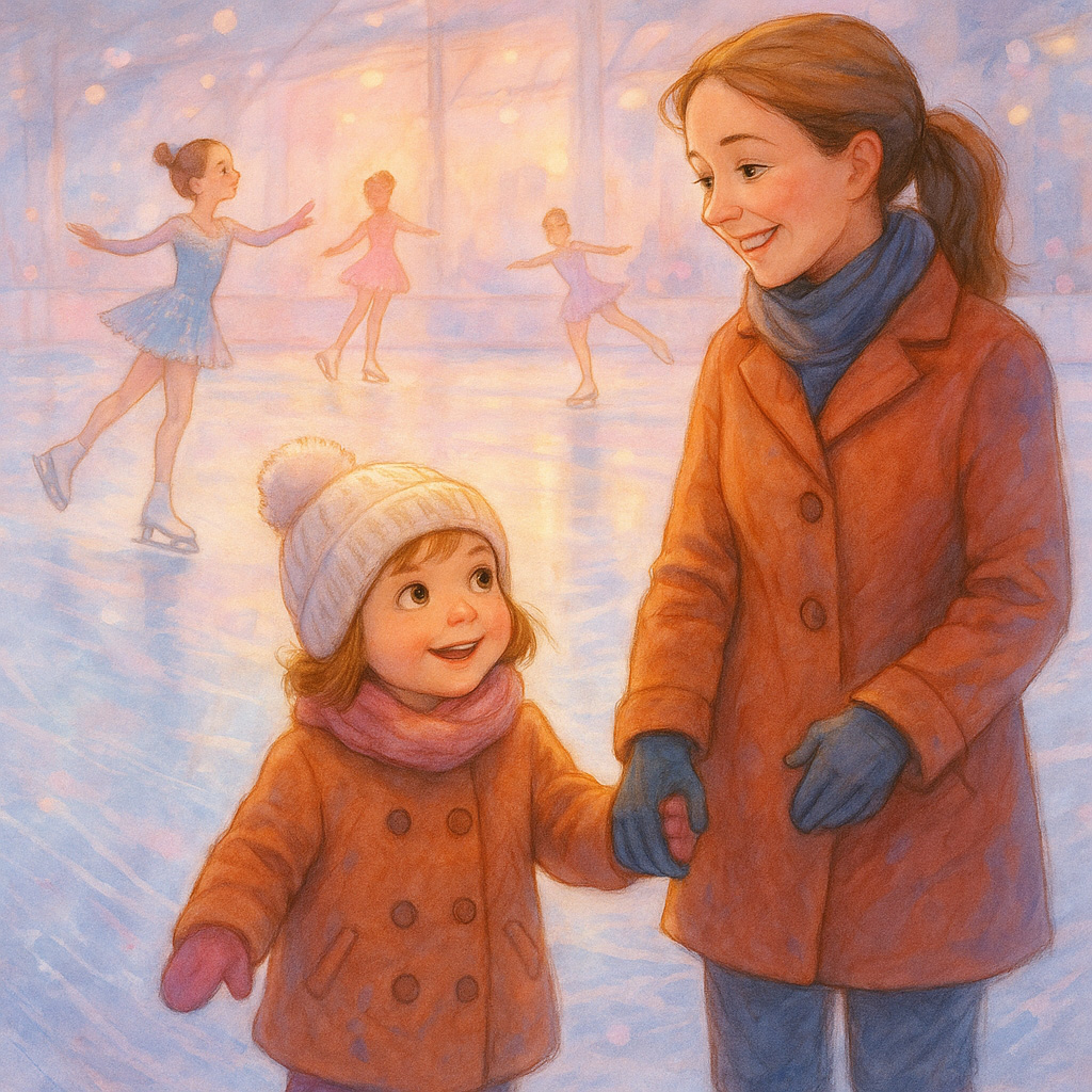 Варя понятия не имела, что такое «ушибы», зато слово «принцессы» запомнила крепко. И вот, в субботу утром, они пришли на каток. Он был большой, холодный и пах мокрыми варежками и замёрзшим железом. Но всё это Варя почти не замечала. Она смотрела на девочек, скользящих по льду, как по воздуху. У кого-то платье было голубое и блестело, как снег на солнце, у кого-то – розовое с пайетками. А музыка звучала такая нежная, как будто кто-то шептал сказку прямо в уши.