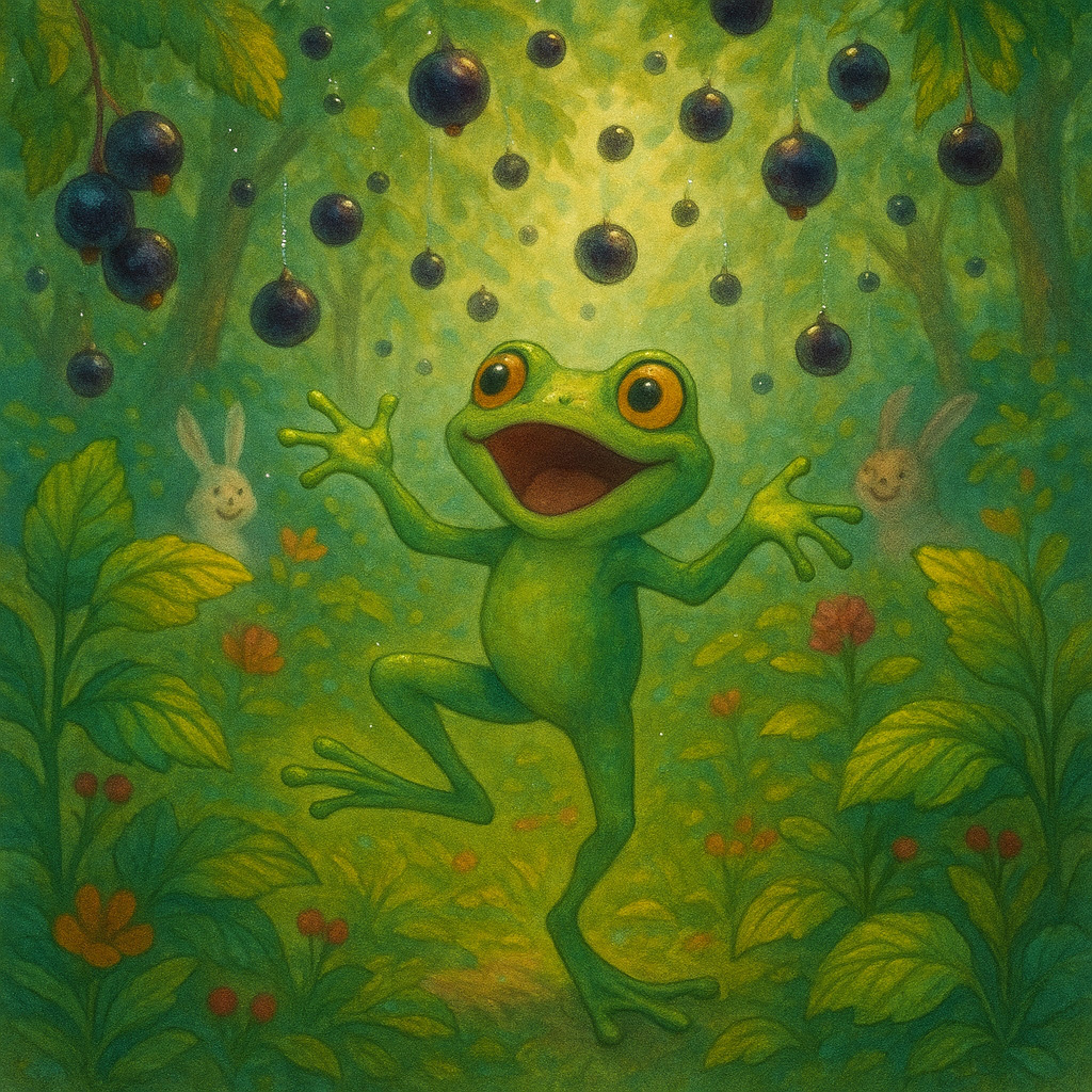 – Почти! – рядом появился кто-то в фиолетовом плаще и с венком из смородины. – Я – синоптик Мокруша. А ты, случайно, не лягушонок из Нижнего леса?