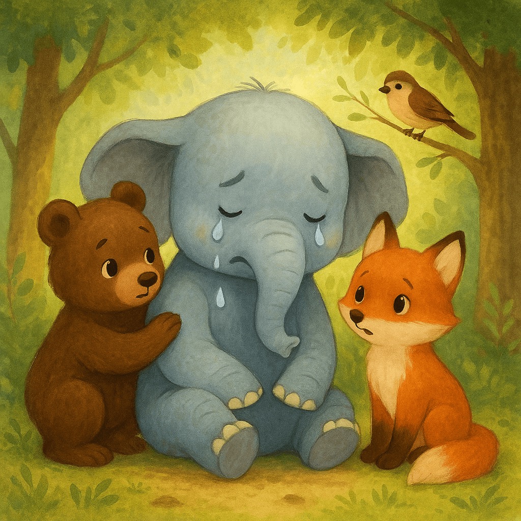 Тотти удивлённо посмотрел на друзей. Никто не смеялся. Никто не отвернулся. Наоборот – все подошли ближе, кто-то тронул его за плечо, кто-то предложил платочек. И тогда слоник вдруг почувствовал, как легко становится, когда можно быть настоящим. Не только сильным и весёлым, но и грустным, и уязвимым.