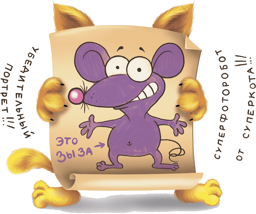 – Для начала розыска нам нужно составить фоторобот Зызы. – Кот принялся расхаживать из стороны в сторону. – Эй, мыши, несите бумагу и карандаши. Каждый суперкот, супермышь и прочий супермен обязан уметь составлять фоторобот. Я вас сейчас научу.