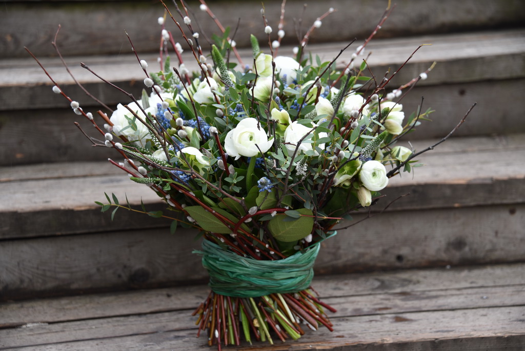 Раскидистый букет. Цветы стоят на значительном расстоянии друг от друга, подходит практически к любым цветам, кроме коротких (мускари, душистый горошек, гиацинты и другие) и любым видам зелени.