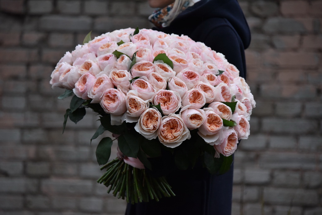 Если букет в упаковке, то она должна быть аккуратно наложена и хорошо зафиксирована.