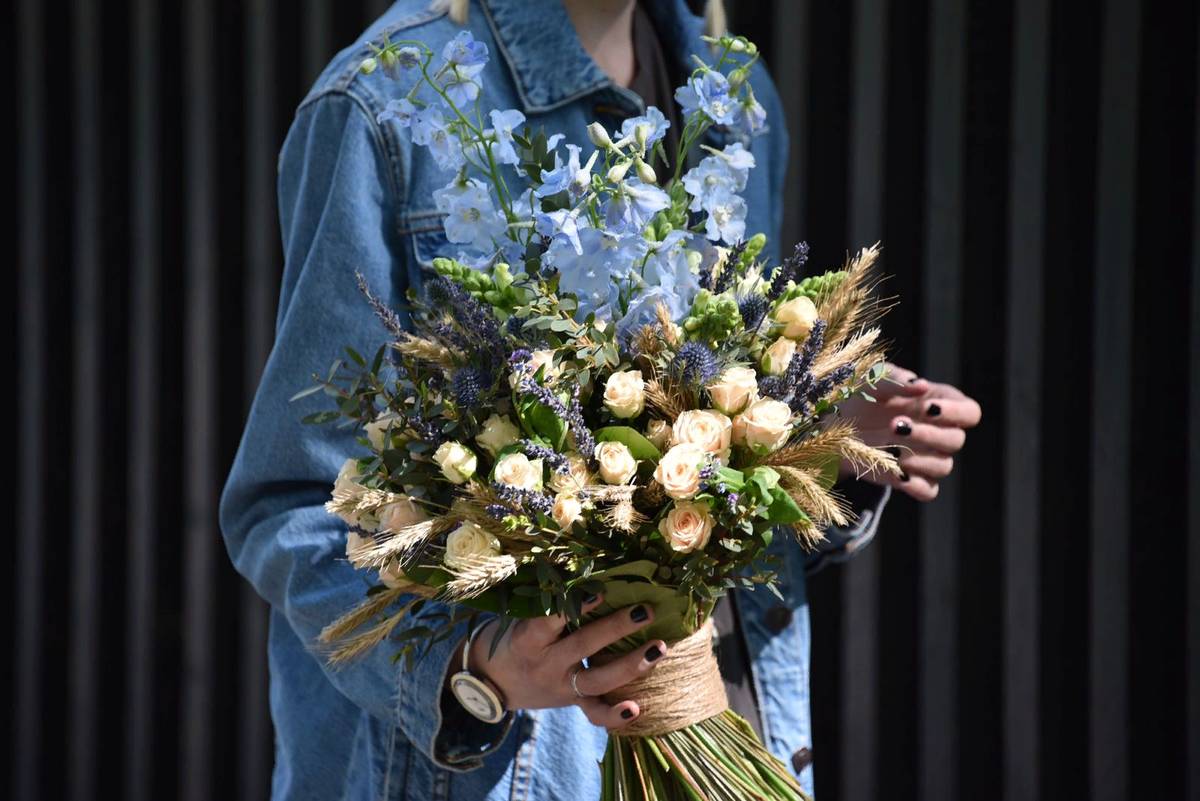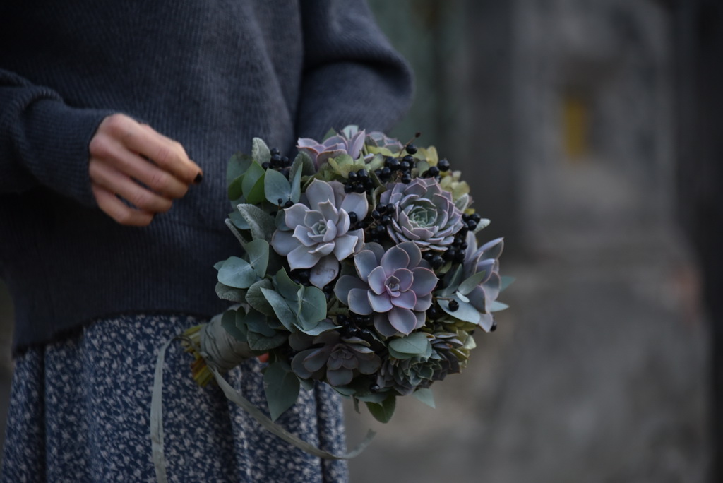 – Оформить низ, чтобы букет выглядел здоровым и красивым. Если это «ниспадающий» букет, то падающая хедера уместна, а если нет, то висящий салал, красоты не предаст, стоит убрать лишнее. Я постепенно училась, понимала и самостоятельно приходила к видению эстетики в этом вопросе.