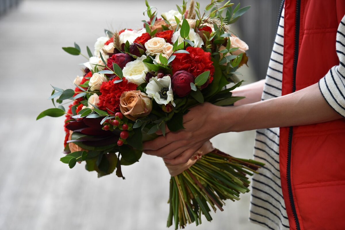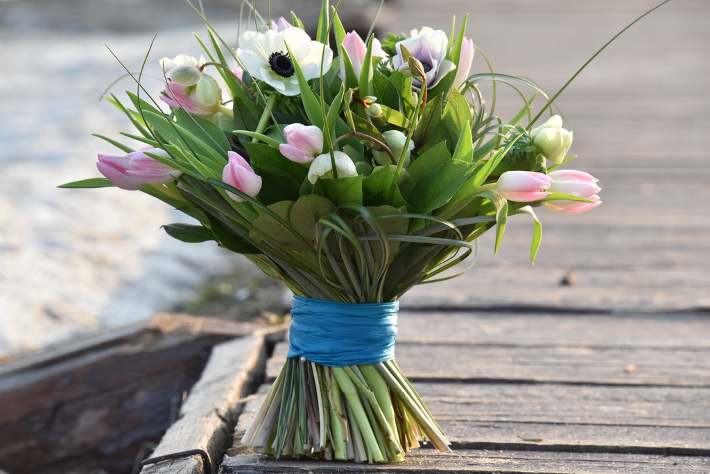 На заметку! Если невеста настаивает на букете из быстрорастущих цветов (например, тюльпаны или анемоны), то собирать его следует прямо перед отправкой, так как форма букета изменится за ночь.