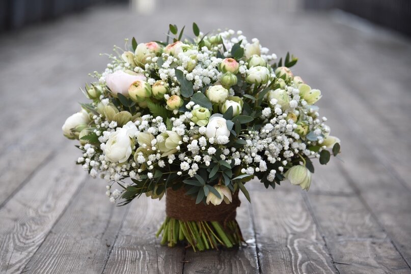 – Мастерство. Стаффажная техника позволяет сохранить и не травмировать цветы, наполняет букет кислородом, прокладывая защиту между стеблями, предохраняя от гниения.