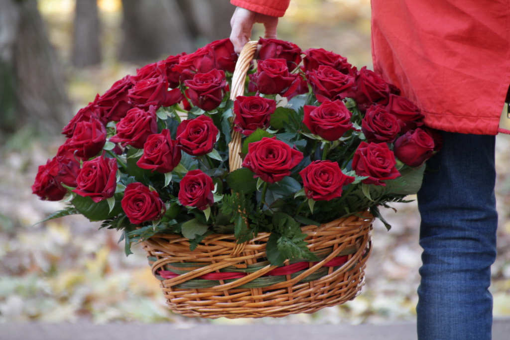 Корзина из роз, собранная классическим способом