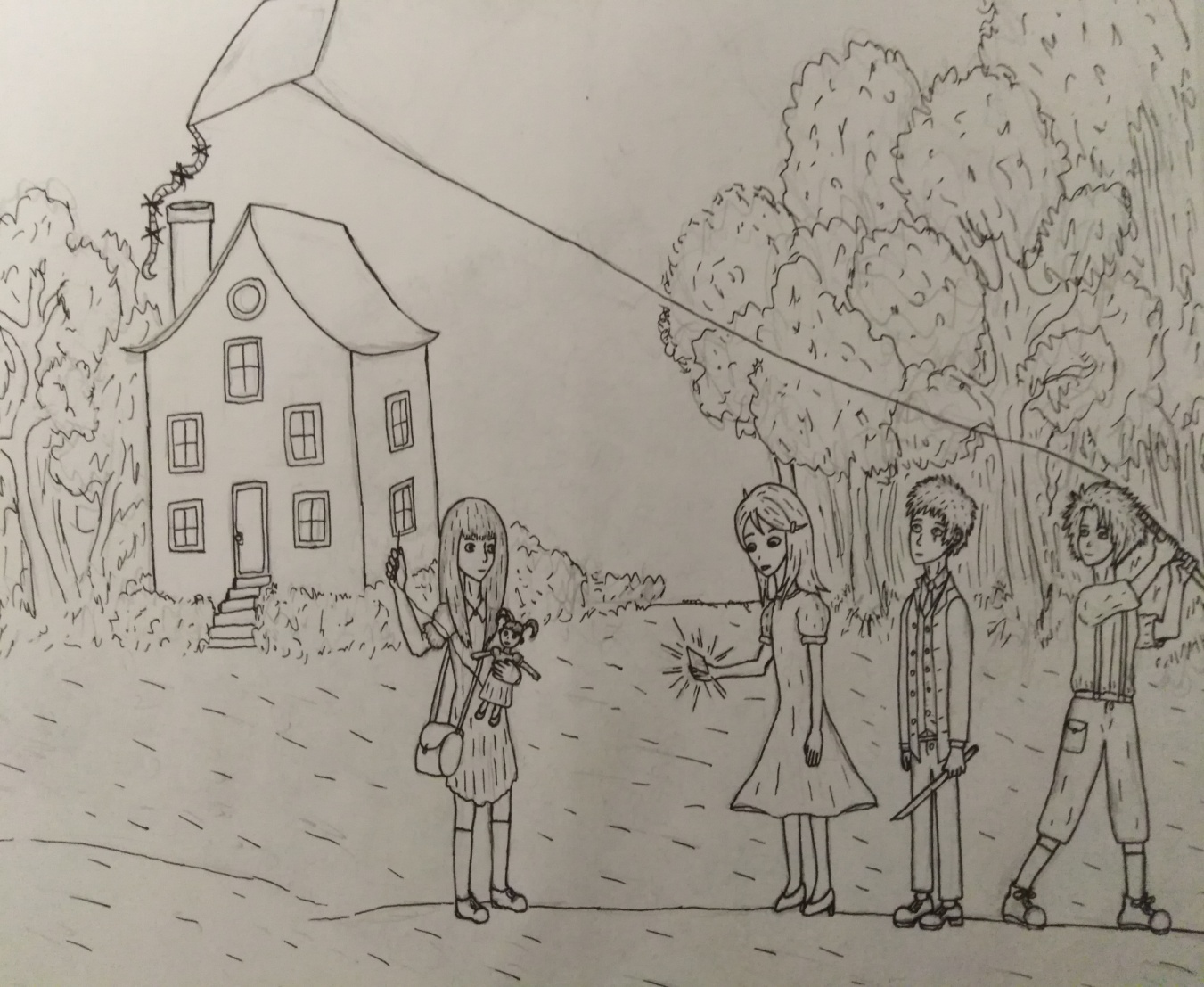 Однажды мечтатель Вилл, вместе со своими друзьями: портняжкой Мией, храбрецом Тимом и Линдой, на высоком холме запускали красивого воздушного змея. Смотря в небо и наблюдая за его полётом дети наслаждались внутренней свободой и радовались бумажному чуду. Но вдруг ветер, сильным порывом оборвал крепкую нить змея, и тот упав разбился об землю. Дети расстроились, печаль холодной тенью отразилась на их юных лицах. Внезапно небо заволокли тучи, начался дождь. Промокшие до нитки и продрогшие до костей друзья долго бродили в поисках укрытия, пока не нашли одинокий, давно заброшенный дом, укрытый шипастой лозой. Пробравшись через колючие заросли, дети оказались в обители запустения и мрака. Побродив по обглоданным временем комнатам, друзья нашли в одной из них старый камин и висящий над ним, не тронутый временем, искусно написанный портрет молодой, рыжеволосой девушки, с изумрудно зелёными глазами и лёгкой добродушной улыбкой на юном лице. Вдоволь налюбовавшись портретом, дети желая согреться, захотели разжечь давно потухший очаг. И по воле ветров они нашли погребённую в пепле старую резную шкатулку. Внутри нее было много необычных и забытых вещей, таких как: осколок зеркала, коробочка с леденцами, моток синих ниток, мешочек стеклянных шариков, серебряная монетка и перевязанная желтой лентой небольшая, потрёпанная книга, в кожаном переплёте. Храбрец Тим себе выбрал монету из лунного металла, портняжка Мия пожелала взять моток ниток, Вилл мечтатель взял звонкие шарики, а маленькая Линда выбрала книгу. Пламя камина с треском и неспешностью пожирало дрова, дождь продолжал шуметь за окном, и не думая заканчиваться. Чтобы было не так скучно пережидать непогоду, друзья решили сыграть в шарики. Но вскоре им это наскучило и тогда Линда развязала желтую ленту, и открыв книгу дети обрадовались, ибо то оказалась старая книга сказок, а все дети очень любят сказки. Друзья расселись поближе к огню, Линда начала читать, ибо всегда были те, кто желал говорить и те, кто желал слушать. Сказка началась.