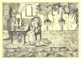 И вот однажды богатый человек пришел сам. Это было вечером, когда обойщик вернулся с работы и сидел в дедушкином кресле, окружённый детьми. По обыкновенно, кто взгромоздился на колени отца, кто сидел на ручке кресла, а двое, самых бойких, бегали по комнате и так весело шумели и кричали, как будто были детьми состоятельных родителей. Но когда вошел богатый человек, всё сразу притихло и попряталось по углам. Обойщику стало неловко, даже страшно за веселье своих детей. Он стоял по средине комнаты, не смея сделать шага навстречу гостю. Жена старалась утешить маленького «соусника», который расплакался, увидев чужого.