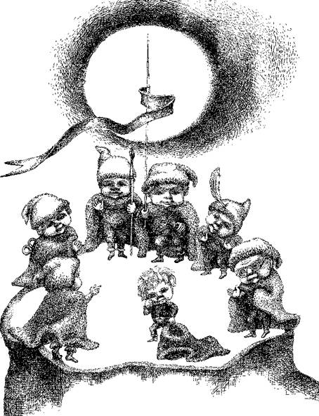 Гномы тут лее окружили его, как пчелы матку. Ученый раскрыл книгу, откашлялся и начал читать: