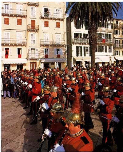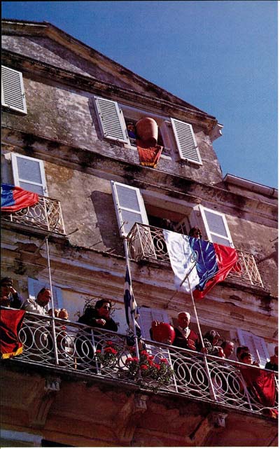 For the next 24 hours, virtually every street in Old Corfu was covered in shattered clay pots. It was like walking on a gravel beach and was hugely good fun. And the sun was shining now, and it really was a pretty place. I believe there were 40,000 people in the streets that day, all crossing themselves as the various parts of the procession passed, and virtually all of them were Greek. The celebration was no cheapskate performance put on for tourists; it was done out of deep belief and longheld tradition.