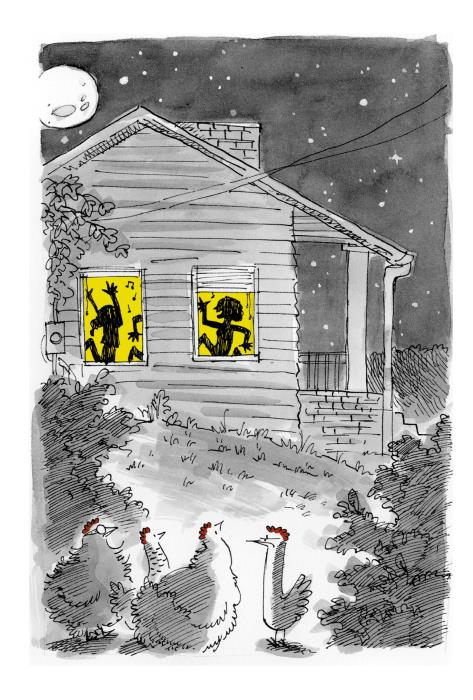 Интересно, какие цыплята вылупятся из этих яиц? А вдруг они станут нести золотые яйца? Тогда папе можно будет не ходить больше на все эти собеседования, а мама сможет наконец написать свой роман, и мы купим семейный компьютер, чтобы мне не приходилось ждать с каждым имейлом, пока мама закончит свою работу. Но если отнести золотые яйца в банк, то кто-нибудь наверняка снова захочет украсть моих кур.