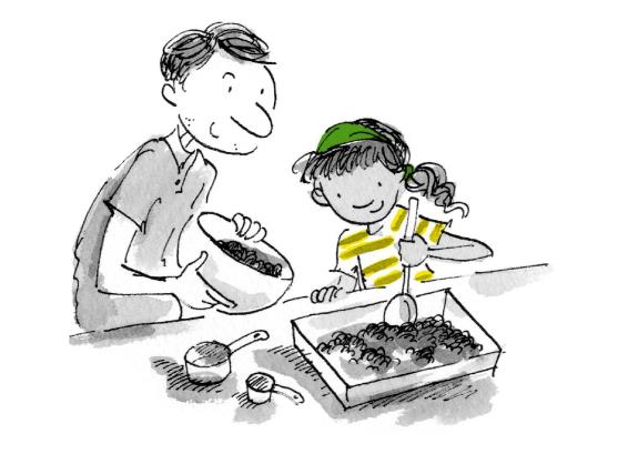 У нас с папой особые правила, когда мы готовим вместе. Сперва решаем, кто будет шеф-поваром, а кто – помощником повара, который должен приготовить соус. Поскольку ягоды собирала я, то и шефом на этот раз стала я.